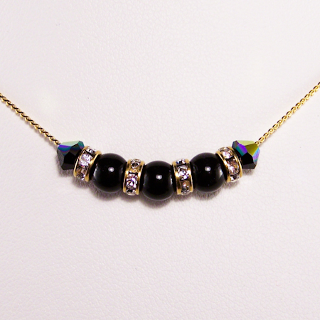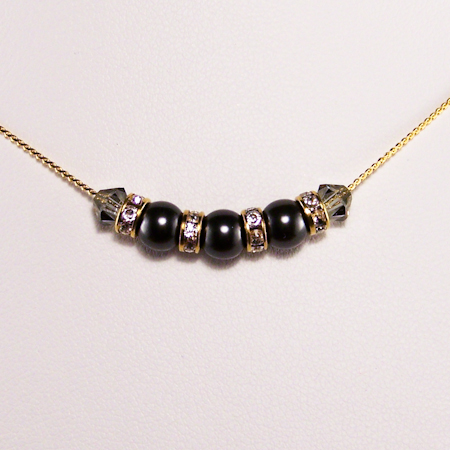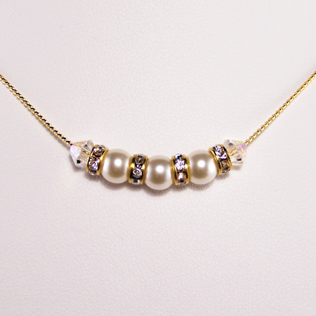 Swarovski crystal pearl 6m Swarovski crystals 5m bicones 5m crystal rondelles Gold plate chain & findings measures: 15-18 inches price: $26.00