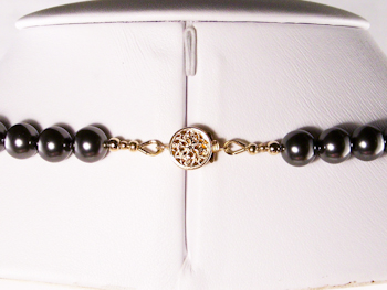 Swarovski crystal pearls 8m Swarovski crystals 6m rounds 6m crystal rondelles 14/20 rolled gold pinch & pull fastener, findings price: $48.00