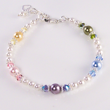 Swarovski crystals 4m Swarovski crystal pearls 6m to 4m Lead-free pewter heishe .925 sterling silver heart charm, clasp & findings measures: size ordered plus small extender price: $31.00