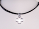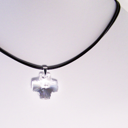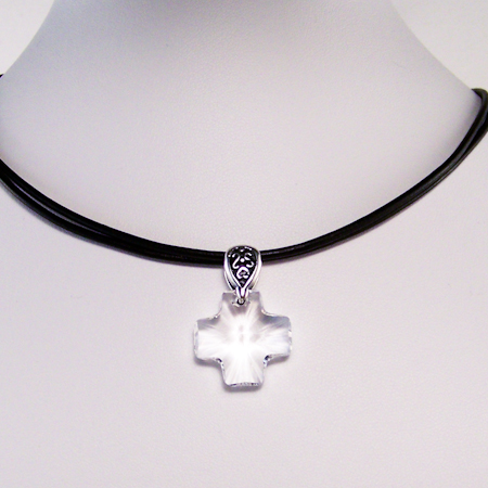 Swarovski crystal 20mmm cross .925 sterling silver bail Fancy pewter bail Greek leather Silver-plate findings measures: 15-18 inches price: starts $20.00
