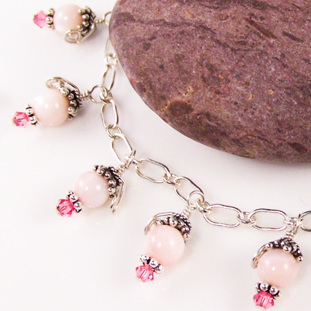 Swarovski crystal 4m bicones Mother-of-pearl 6m .925 sterling silver turkish caps chain & findings