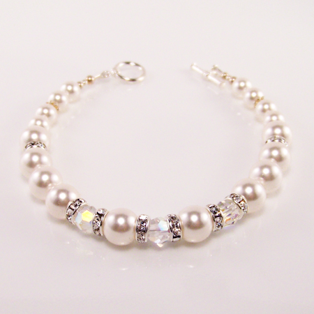 Swarovski crystal pearls 8m Swarovski crystals 6m rounds 6m crystal rondelles Pewter .925 sterling silver toggle clasp, findings price: $33.00