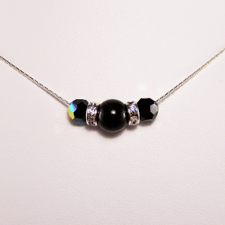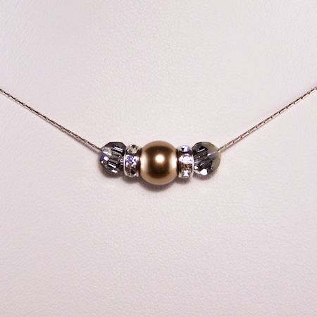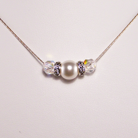 Swarovski crystal pearl 8m Swarovski crystals 6m rounds 6m crystal rondelles .925 sterling silver chain & findings measures: 15-18 inches price: $26.00