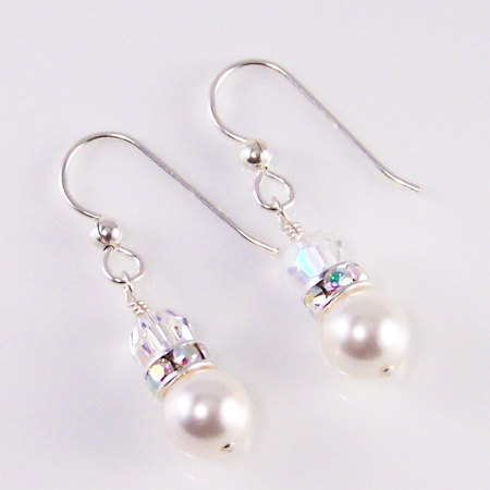 Swarovski crystal pearls 8m Swarovski crystals 6m rounds 6m crystal rondelles .925 sterling silver or silver plate ear findings price: starts $20.00