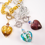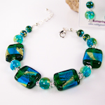 foil-lined art glass in silver or gold accents & matching earrings